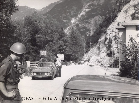 Belluno, regolazione del traffico da parte di un soldato forse dopo la catasfrofe del Vajont, avvenuta il 9 ottobre 1963.