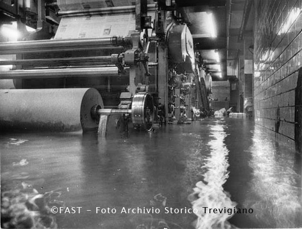 Venezia, sala rotative del Gazzettino durante l'alluvione del novembre 1966.