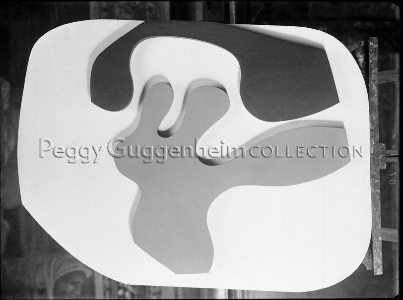 L'opera di Jean Arp, "Scarpa azzurra rovesciata con due tacchi sotto una volta nera" (1925), della Peggy Guggenheim Collection. Fotografato per l'edizione del Catalogo della Galleria "Art of this Century", che Peggy Guggenheim aprì a New York nel 1941.