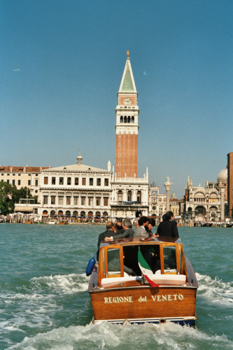 Gli esponenti italiani di ritorno dall'Isola di San Giorgio in occasione del Convegno internazionale "Giornate delle genti e delle regioni d'Europa" (Venezia 14-21 settembre 1986) promosso dalla Regione del Veneto con la collaborazione della Fondazione Giorgio Cini e de La Biennale di Venezia.