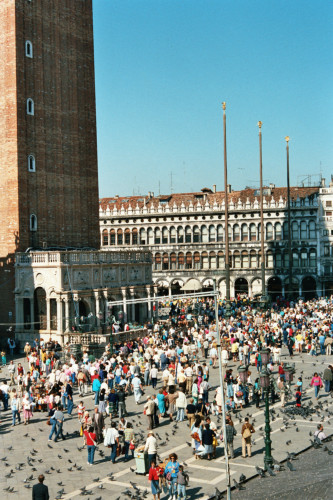 Piazza San Marco ripresa in occasione del Convegno internazionale "Giornate delle genti e delle regioni d'Europa" (Venezia 14-21 settembre 1986) promosso dalla Regione del Veneto con la collaborazione della Fondazione Giorgio Cini e de La Biennale di Venezia.