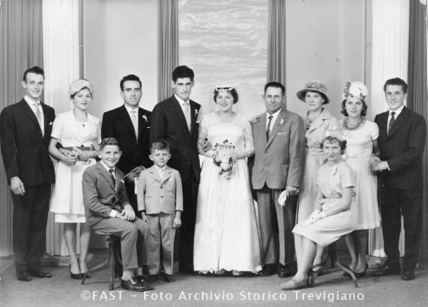 Da sinistra: Franco Benato, Albina Visentin, Vittorio Pivotto, Nico Cesconetto, Guglielmina Visentin, Fortunato Visentin, Salute (Assunta) Berlese, Jole Visentin, Angelo Savagnon; seduti: Pietro Visentin, Riccardo Visentin, Graziella Visentin (a. 1962).