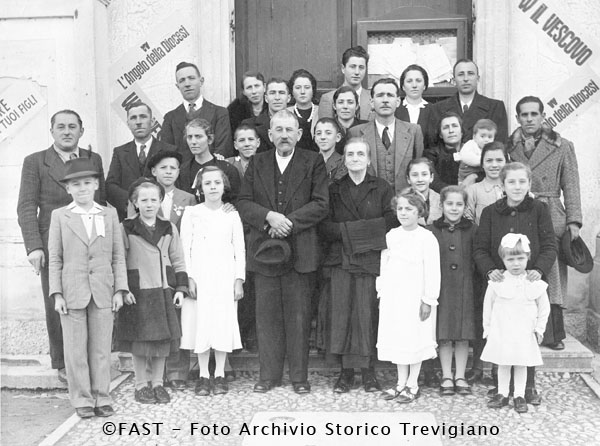 Da sinistra: (in alto) Gino Carrer, (davanti) Parisio Girotto, Ernesto Girotto, Andreina Bordignon, Achille Girotto, Luigi (Berto) Bordignon, Annamaria Berlese, Rosetta Girotto, Natale Girotto, Pompea Girotto, Marcello Girotto, Angelo Girotto, Albina Girotto, Armando Girotto, Pietro Girotto, Margherita (Rita) Bordignon, Rosa Guerra, Vittorio Girotto, Gina Girotto, Adriana Girotto, Renza Girotto, Dina Girotto, Giuseppe Girotto, Maria Girotto con in braccio Giorgio Sartori, Luigi Sartori, Imelda Girotto, Flora Girotto, Blandina Girotto (a. 1943).