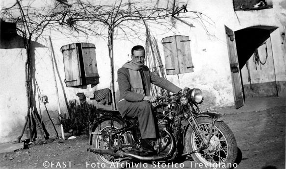 Rino Urio sulla moto Bianchi 500 (a. 1952)