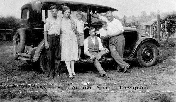 Da sinistra: un amico, Fortunata Gasparetto, Rino Urio, Giuseppe Urio, Gidi Urio ed un altro amico (a. 1929).