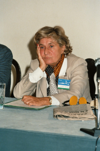 Maria A. Maciocchi ripresa in occasione del Convegno internazionale "Giornate delle genti e delle regioni d'Europa" (Venezia 14-21 settembre 1986) promosso dalla Regione del Veneto con la collaborazione della Fondazione Giorgio Cini e de La Biennale di Venezia.