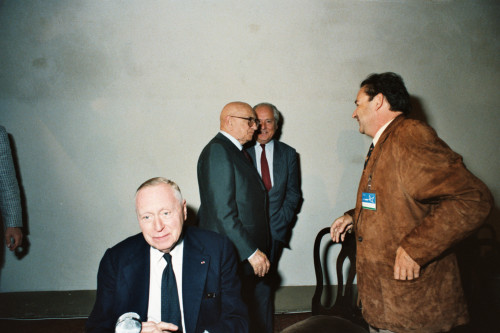 Alcuni partecipanti ad una conferenza tenuta da Giulio Andreotti sull'Isola di San Giorgio Maggiore in occasione del Convegno internazionale "Giornate delle genti e delle regioni d'Europa" (Venezia 14-21 settembre 1986) promosso dalla Regione del Veneto con la collaborazione della Fondazione Giorgio Cini e de La Biennale di Venezia.