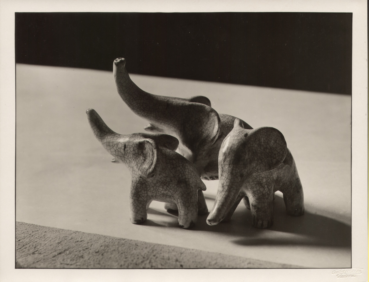 Piccole sculture raffiguranti tre elefanti. Opere realizzate dalla scuola d'arte P.Selvatico di padova, negli anni 1931-33. Ceramiche realizzate nel laboratorio del maestro Posern.