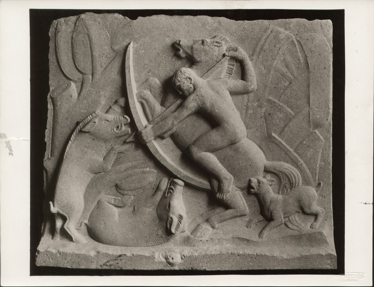 Scena di caccia, bassorilievo. / positivo / Danesin; / 1931