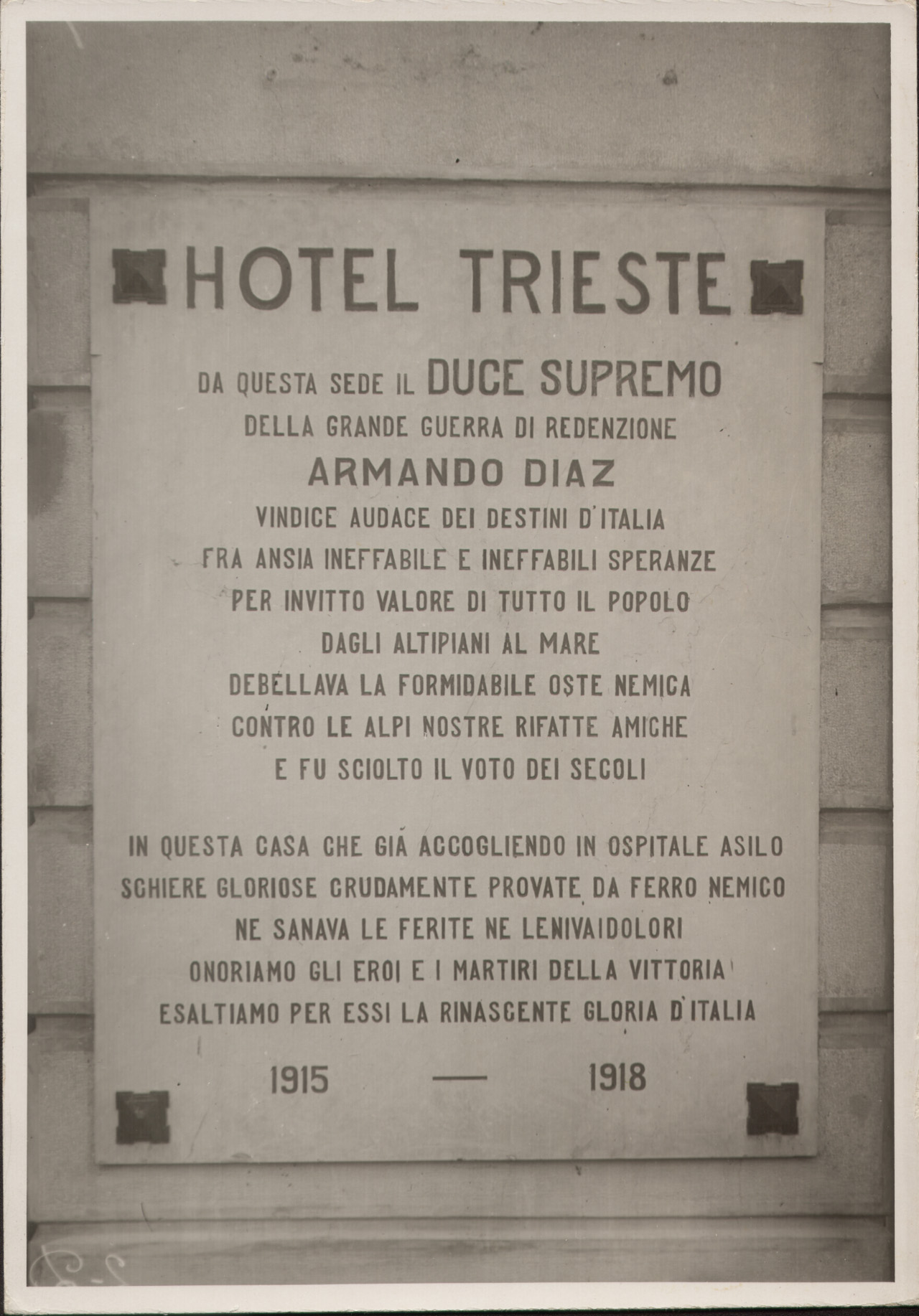 In primo piano la targa commemorativa dell'hotel trieste di Abano Terme, per i caduti nella prima guerra mondiale.
