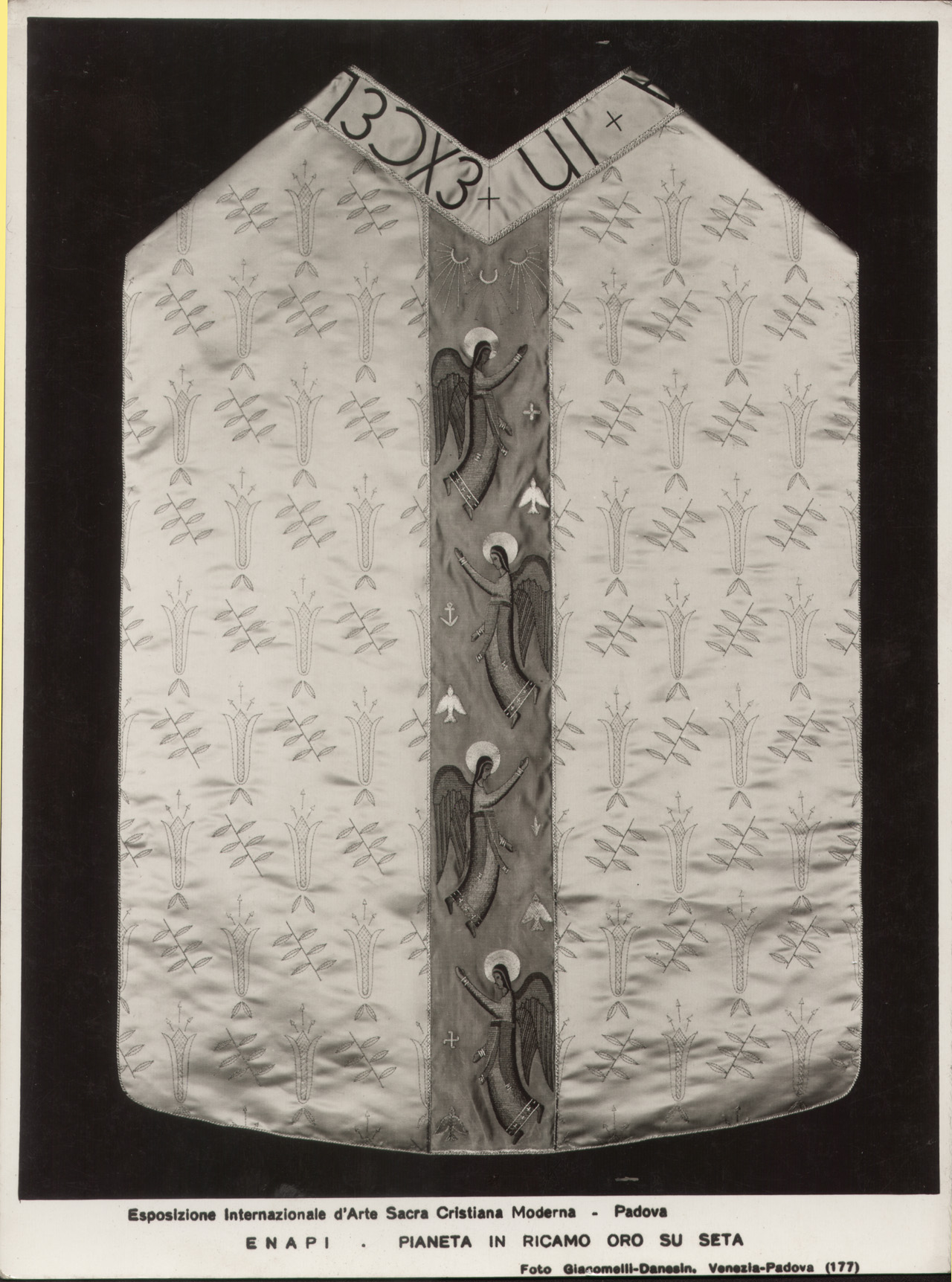 Paineta in ricamo oro su seta, materiale dell'Esposizione Internazionale d'Arte Sacra Cristiana Moderna, Padova 1930.