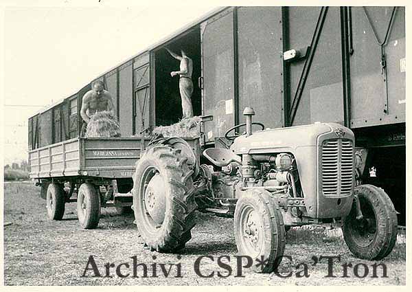 Balle di fieno donate dalla Croce Rossa Svizzera agli alluvionati veneti vengono scaricate allo scalo merci di Motta di Livenza dopo la stragica alluvione del novembre del 1966.
