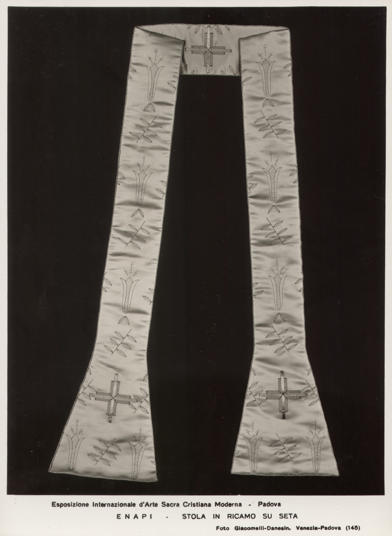 Stola in ricamo su seta, esposta alla mostra internazionale di arte sacra crisitana moderna, Padova 1930.