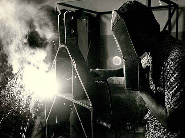 Uno studente della scuola professionale di Signoressa impara ad usare la fiamma ossidrica.
