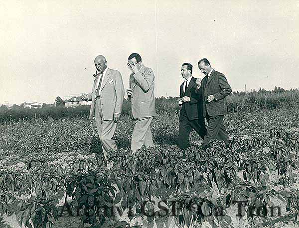 Sicco Mansholt esponente CEE, visita i campi della scuola accompagnato da dirigenti dell'istituto per l'agricoltura di Castelfranco.