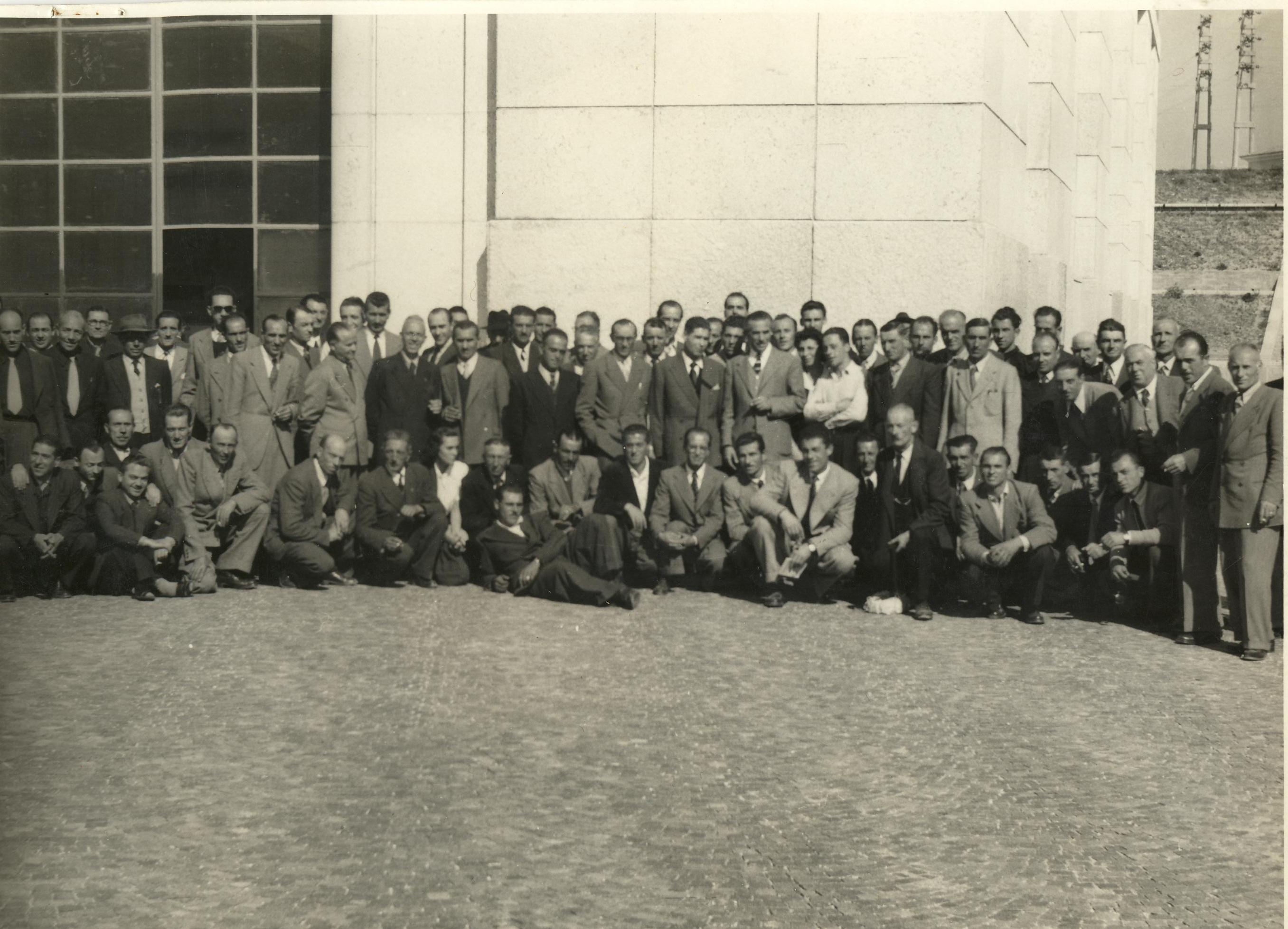 Gita aziendale maestranze della Sade (elettrici) a centrale di Chievo, si riconoscono quello sdraiato a terra Boesso Rino e in ultima fila il più alto con baffi vero sx Stellin Luigi