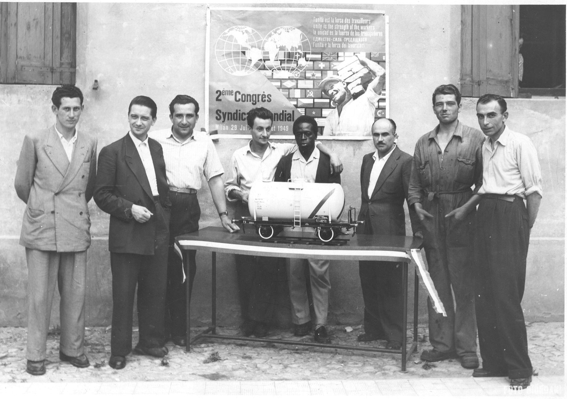 Partecipanti al 2° congresso sindacale mondiale Milano 29.07.1949 si riconoscono da sx verso dx il 1° Alpado Adriano, 2°Dalla Putta Sante (girnalista Unità), 3° Andolfo Nicola, 4° Rossetto, 6° Marotto, 7° Brogio Sereno e ultimo Nicolè Antonio segretario