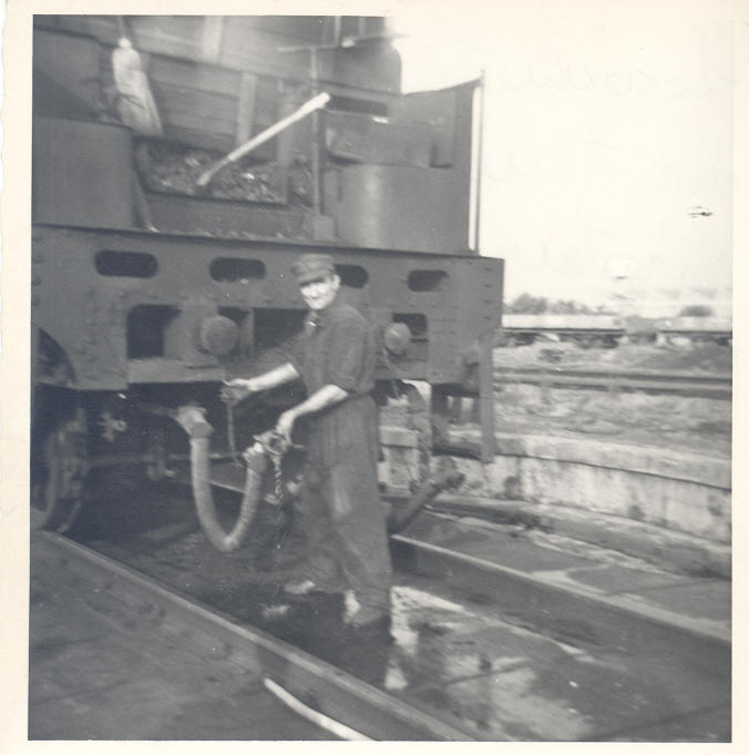 Locomotiva in manovra con ferroviere a Bassano del Grappa il 3.11.1955