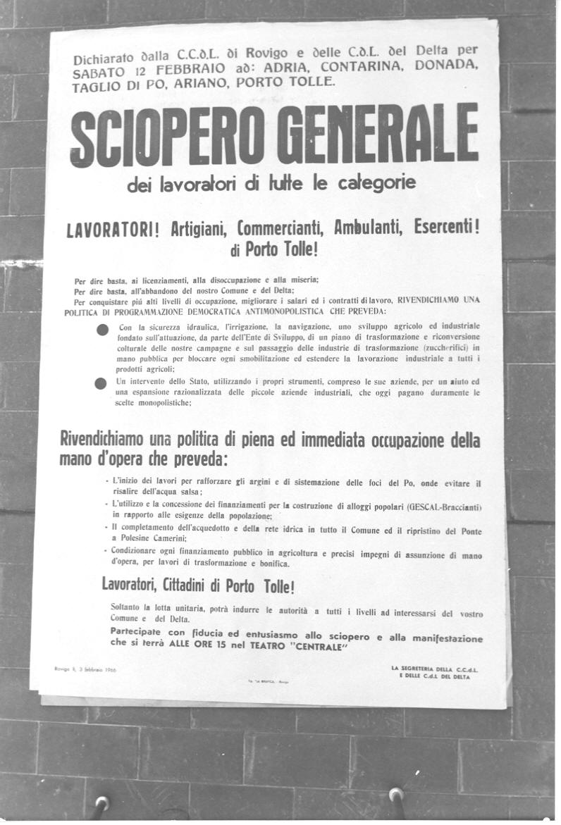 Manifesto di sciopero generale a Porto Tolle