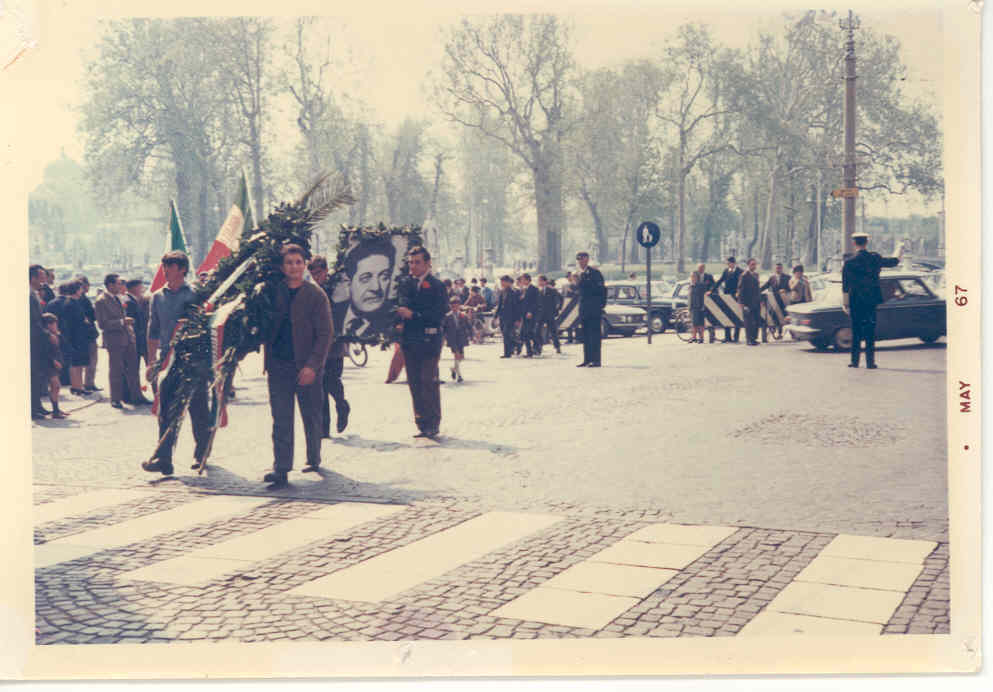 due partecipanti trasportano la foto di Giuseppe di Vittorio