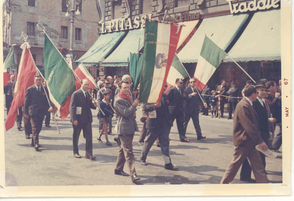 Partecipanti alla manifestazione per il 1° maggio con bandiere e gonfaloni