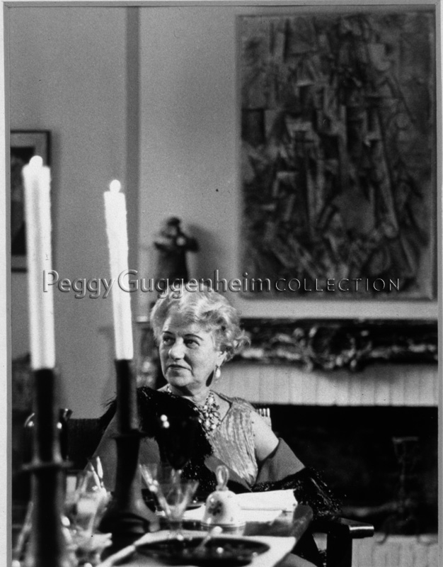 Servizio fotografico: Peggy Guggenheim con vestito di Fortuny in camera da letto