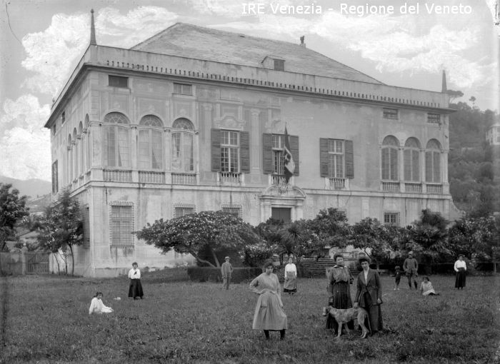 L'uomo in fondo con il cappello è Tomaso Filippi. In primo piano Elvira Filippi accarezza il cane. Le altre persone sono tutte molto probabilmente della famiglia Filippi.