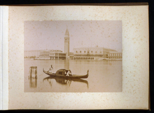 Venezia. Piazza San Marco ripresa dalla Laguna antistante. In primo piano una gondola.