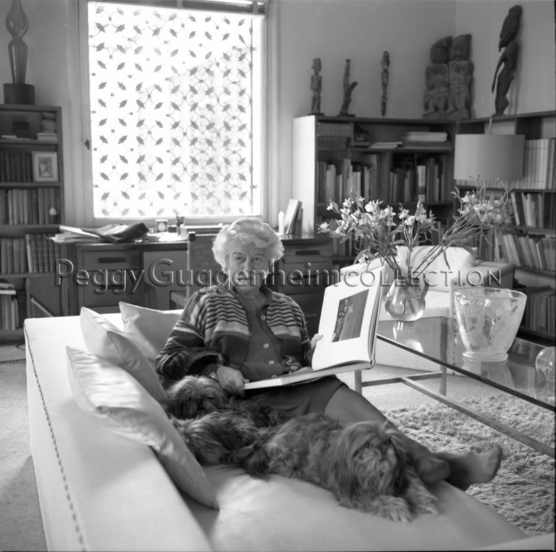 Servizio fotografico: Peggy Guggenheim distesa sul divano a Palazzo Venier