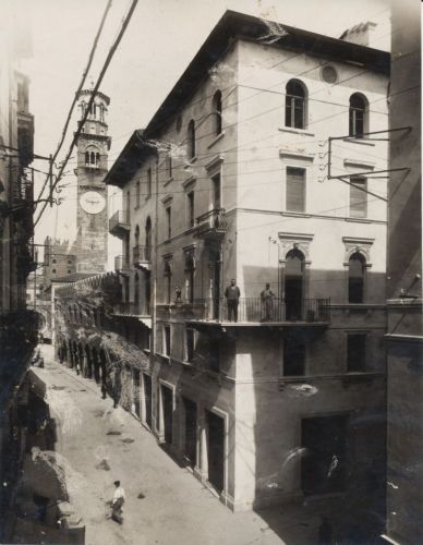 Veduta da Galleria Pelliciai verso piazza Erbe, con figure umane