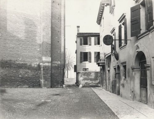 Veduta della parte finale della via, a sinistra la base dell'abside di S.Anastasia. A destra, donna affacciata alla finestra di un'abitazione