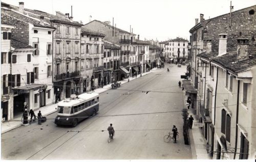 Tratto da piazza S.Toscana in direzione di via S.Nazaro, con filobus e passanti