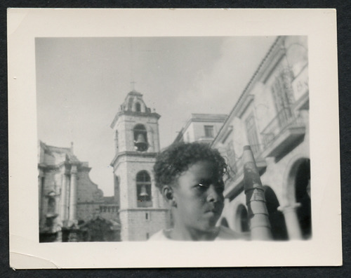 Plaza de la Catedral a L'Avana (Cuba). In primo piano un bambino oriundo.