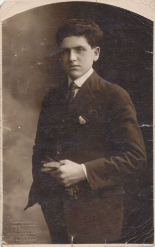 Ritratto in piano americano di giovane uomo con guanti in mano