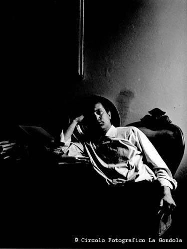 Ritratto del fotografo Giuseppe Bruno comodamente seduto.