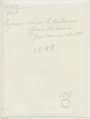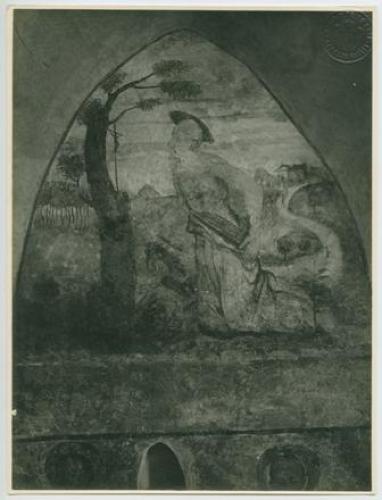 Riproduzione fotografica dell'affresco presente nell'abside della chiesa di Castelnuovo a Fogliano Redipuglia, comune della provincia di Gorizia, raffigurante San Gerolamo nel deserto.