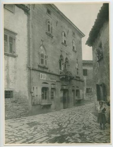 Riproduzione fotografica della facciata gotica del Palazzo Salamon a Grači?će (Gallignana), comune croato della Regione Istriana.