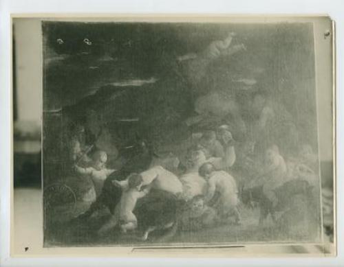 Riproduzione fotografica di un dipinto raffigurante "Bacco e putti", di proprietà al tempo della famiglia Fonzari di Gorizia. Il dipinto è attribuito a Giulio Carpioni.