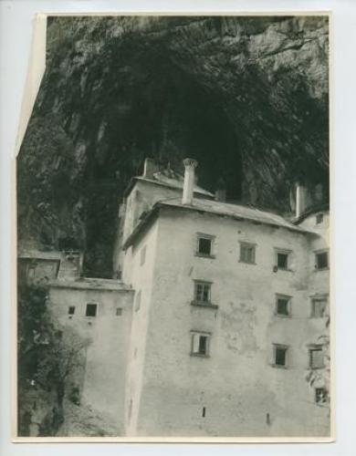 Riproduzione fotografica di un lato di Castel Lueghi di Postumia, Slovenia.