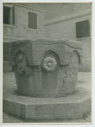 Riproduzione fotografica di una vera da pozzo collocata presso una piazzetta di Motovun (Montona, Croazia).