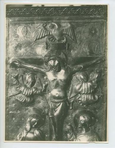 Riproduzione fotografica di un dettaglio (crocifissione)dell'altare portatile (detto del Colleoni e risalente alla prima metà del '300) custodito presso la chiesa di Santo Stefano a Motovun (Montona, Croazia).