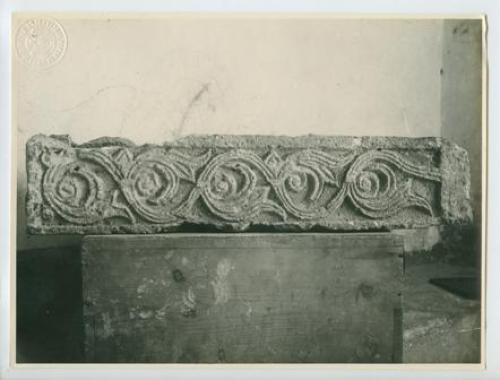 Riproduzione fotografica di un frammento di decorazione bizantina in pietra, custodito presso la chiesa del cimitero della cittadina di Osor (Ossero), sull'Isola di Cherso (Croazia).