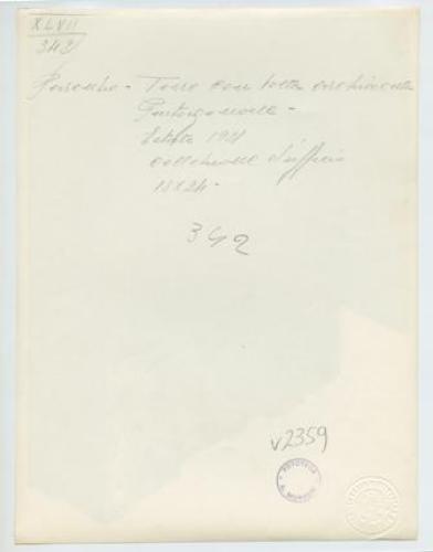 Riproduzione fotografica di una torre con volta pentagonale nella città di Poreč (Parenzo, Istria).