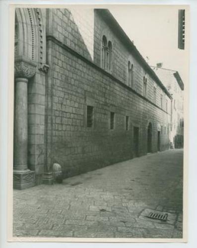 Riproduzione fotografica di una porzione esterna del palazzo arcivescovile della città di Poreč (Parenzo, Istria).