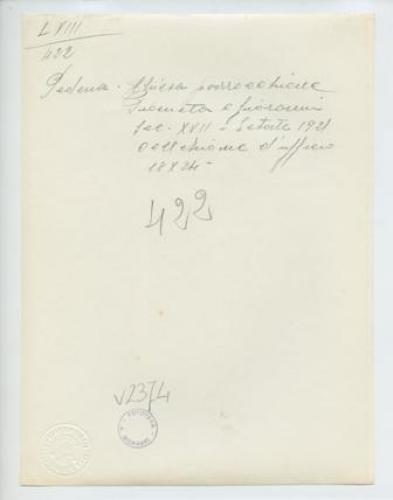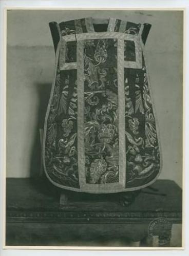 Riproduzione fotografica di una pianeta ricamata con motivi floreali (sec. XVII) custodita presso la chiesa parrocchiale di Pićan (Pedena, Istria).