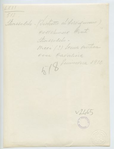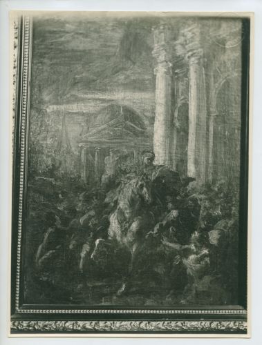 Riproduzione fotografica del dipinto raffigurante una scena antica con cavaliere, attribuito da Antonio Morassi a Sebastiano Ricci. Il dipinto appartiene alla collezione privata dei Conti Strassoldo, famiglia che ancora oggi abita il Castello eponimo presso Strassoldo, frazione di Cervignano del Friuli.