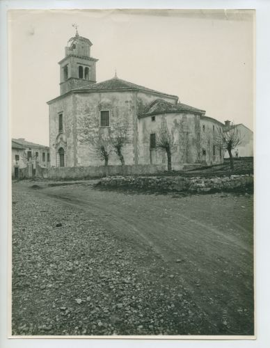 Riproduzione fotografica del campanile, ripreso dall'esterno, della Chiesa succursale di Sant'Egidio a Sveto (Sutta), frazione del Comune di Comeno, Slovenia.