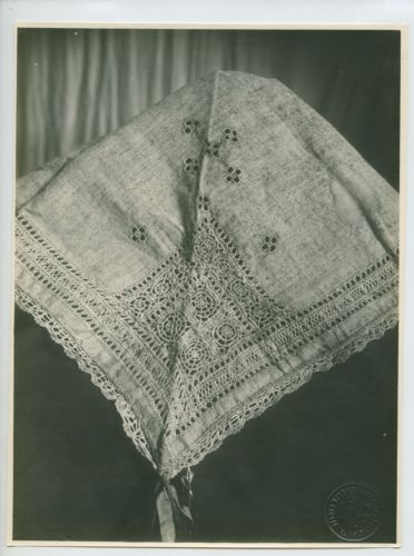 Riproduzione fotografica di un fazzoletto ricamato esposto alla Prima mostra d'arte popolare italiana, che si tenne a Trieste nel 1922.