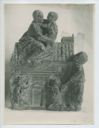 Riproduzione fotografica di un bassorilievo in legno raffigurante la Madonna di Loreto esposto alla Prima mostra d'arte popolare italiana, che si tenne a Trieste nel 1922.