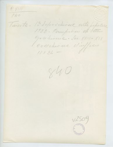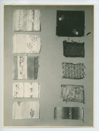 Riproduzione fotografica di campioni differenti di seta decorata (sec. XVIII-XIX) provenienti da Gorizia ed esposti alla Prima mostra d'arte popolare italiana, che si tenne a Trieste nel 1922.